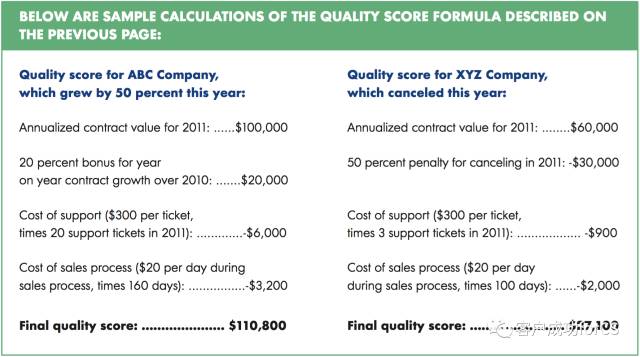 客户生命周期价值:客户在整个生命周期内累计给企业贡献的价值,也可以理解就是我们常说的LTV,如果只是粗略计算,可以统一按照LTV的计算方式来,即LTV=年合同价值*(1/年流失率),基本上综合了合同价值和客户流失。如果考虑客户增购,就需要重新修正公式了。
