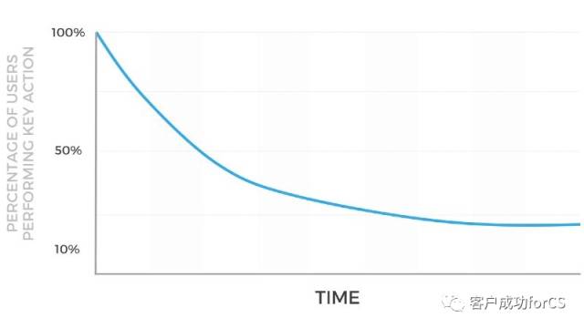 对于符合PMF(产品/市场匹配型产品,也就是说产品符合市场需求)的产品,完成关键行为的用户占比曲线一定会在某个时间点变平缓(否则,你得认真反思下,你的产品是不是能满足用户需求,这是很严重的问题)。