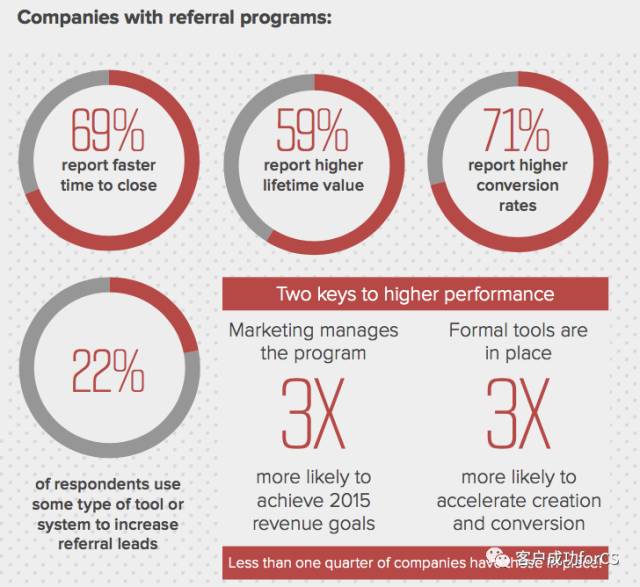 专注客户推荐的SaaS公司Influitive和市场营销公司Heinz做过一份详细的研究,证明口碑推荐的客户销售周期更短、成单率更高,并且有更高的LTV。研究表明,成功的组织有如下特点: